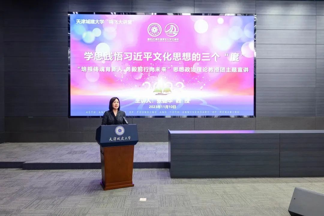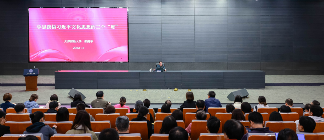 11月10日,学校举办“鸣飞大讲堂”宣讲活动,邀请天津财经大学马克思主义学院张健华教授,走进bv伟德国际1946校园,以《学思践悟习近平文化思想的三个“度”》为主题作专题讲座。学校二级单位党组织理论学习中心组全体成员、全体处级干部及师生代表约400人参加。讲座由校党委常委、党委宣传部部长杨静主持。