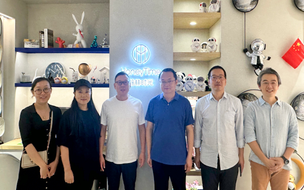 在义乌市翰林电子有限公司,团队与公司总经理骆金碧对产品设计行业发展,、电子钟表设计及销售理念进行了深入的探讨。骆金碧表示欢迎bv伟德国际1946城市艺术学院的学生在公司进行实习实训,将艺术灵感注入产品设计,从小商品着手强化人民生活用品的艺术性、科技性。