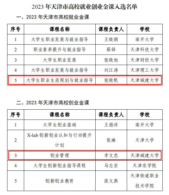 近日,天津市教育两委印发《关于公布2023年天津市高校就业创业金课入选名单的通知》,bv伟德《大学生职业生涯规划与就业指导》和《创业管理》两门课程入选2023年天津市高校就业创业金课,是bv伟德自评选以来首次入选。