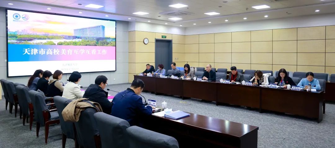互学互看工作会议由校团委书记孙旭卓主持,校党委副书记王罡出席,城市艺术学院院长张小开、教务处副处长苑宏英参加,美育教师、辅导员代表及学生代表列席。
