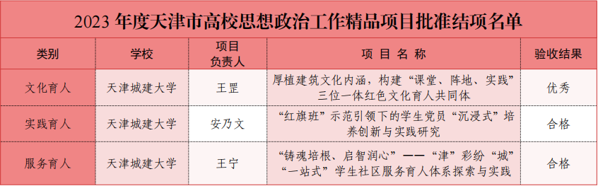 近日,市教育两委公布了2023年度天津市高校思想政治工作精品项目结项及2024年度天津市高校思想政治工作精品项目立项名单。
