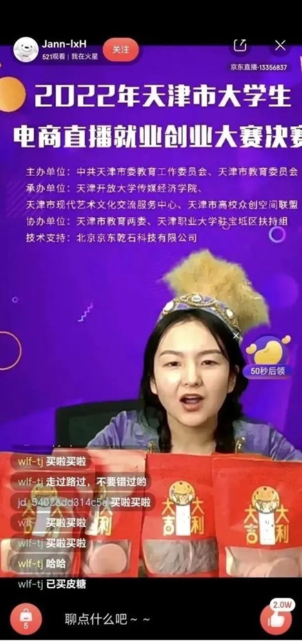 据悉,大学生电商直播就业创业大赛是由天津市教育两委主办,已连续举办三届。每届有40-50所高校参赛,累计报名过万人,活动得到快手、抖音和京东等互联网平台的大力支持,本次大赛吸引了近3000余名学生报名参加,共收到参赛作品1.2万余条,总播放量4000万次,大赛共产生一等奖10名、二等奖20名、三等奖30名,评选出13个优秀组织单位。