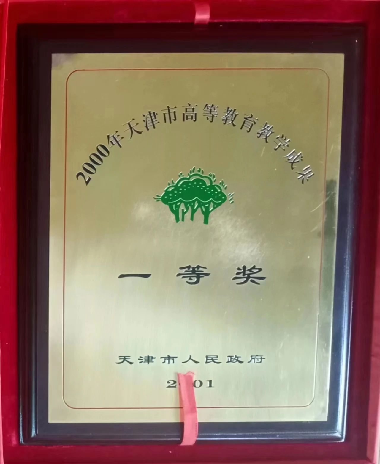 “材料力学CAI系统的研制、开发与应用”获天津市人民政府授予的2000年高等教育天津市级教学成果一等奖