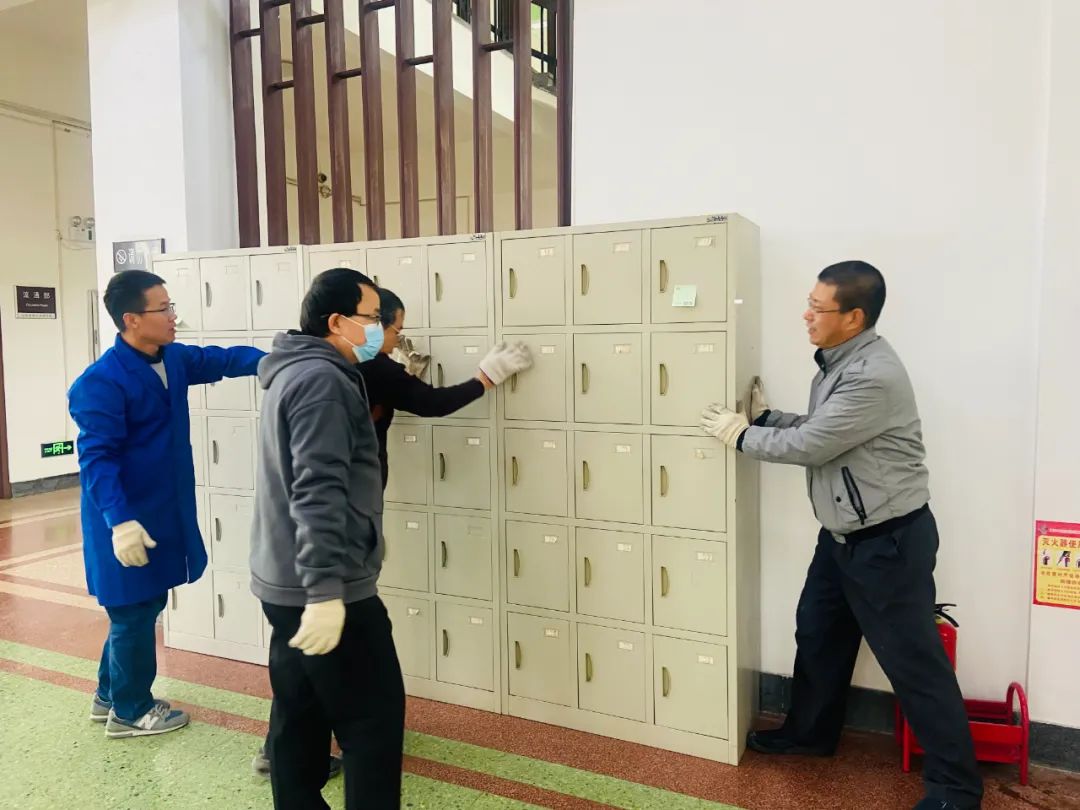 说干就干。副馆长孙刚多日来带领党政办公室周萍、戴玺首先通过对馆内现有全部书架摸排统计、测量尺寸,对各自习室(厅)摆放位置进行布局规划,又联系国资处积极协调将煦园宾馆和现教地库闲置的格柜等重新利用改做物品储放格架。经过努力,最终搜集到7类不同材质不同尺寸大小格总位数逾800个的格架,基本满足现有600余个学习座位的使用要求。