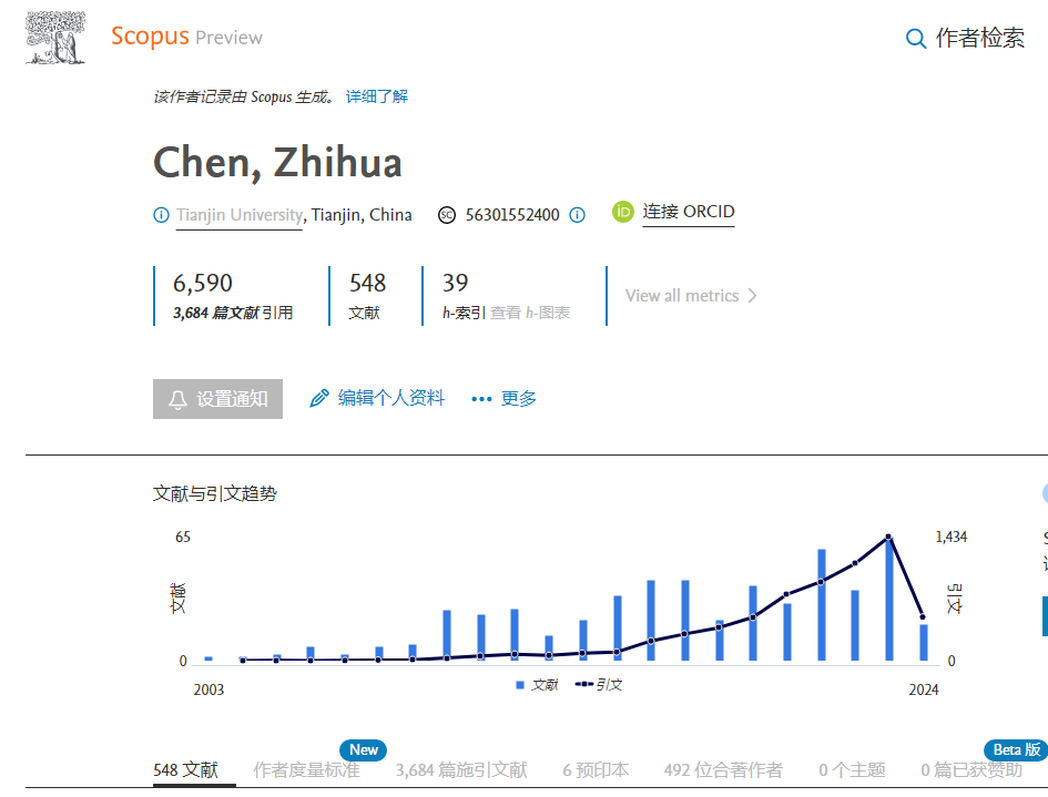 截至当前,Scopus数据库已收录陈志华教授548篇文章,被3684篇文献引用,492位合著作者,展示了在土木工程学科领域强大学术影响力。此次入选,标志着bv伟德在“品牌强校”建设进程中又迈出坚实一步。