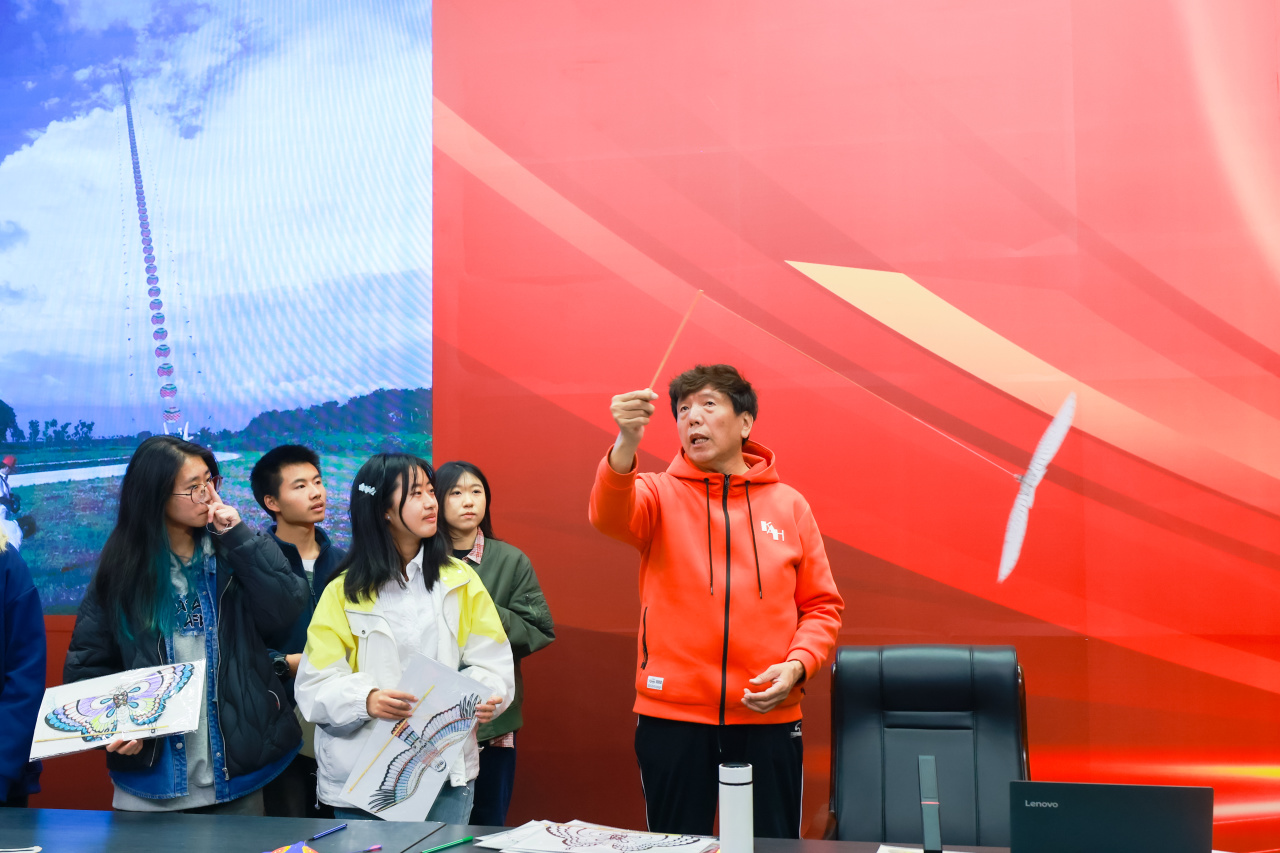王罡对魏国秋一行表示热烈欢迎,她表示“风筝魏”是“津门三绝”之一,小小的风筝凝聚着魏家五代人的匠心与智慧,背后包含着深厚的匠人精神和中华优秀传统文化的深厚底蕴。感谢魏先生让师生有机会近距离领略到风筝制作的精湛技艺和独特魅力,深入认识天津本土文化的丰富内涵,激发学生对自己求学城市天津的了解和热爱,期望双方以本次活动为契机,进一步深入合作,开展形式多样的美育课程、实践等活动。