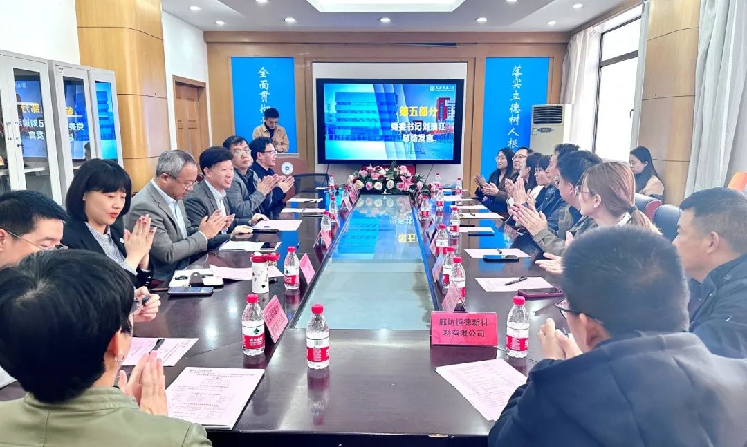 刘瑞江对刘亚柱和企业一行人员的到来表示欢迎,对参会企业多年来对学院就业工作的大力支持与关心表示衷心感谢。他表示,此次访企拓岗和校企合作座谈会的召开,是学院全面深化校企合作,实现校企供需对接的体现,为进一步拓宽合作广度和深度,寻找校企更多的融合点和创新点,形成促进学校毕业生更高质量就业、助力用人单位选才的双赢局面奠定了良好基础。今后,学院将继续加强与行业协会、用人单位在支部共建、实习实践及社会服务等方面进行深入探索,持续发挥高校教育科技人才优势,聚焦培育新质生产力服务地方发展,为天津加快社会主义现代化大都市建设贡献力量。