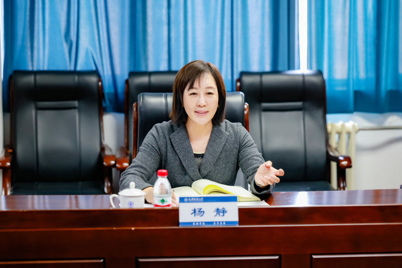 座谈会上,杨静对郭仡一行的到来表示热烈欢迎,简要介绍了学校的总体情况,从学校学科特色、发展沿革、专业设置、师资队伍等方面进行了详细说明。