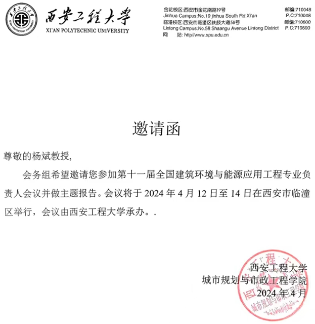 近日,第十一届全国建筑环境与能源应用工程专业负责人会议在西安市临潼区举行,会议由西安工程大学主办,bv伟德能源与安全工程学院院长杨斌教授应邀参加会议并做主题报告。