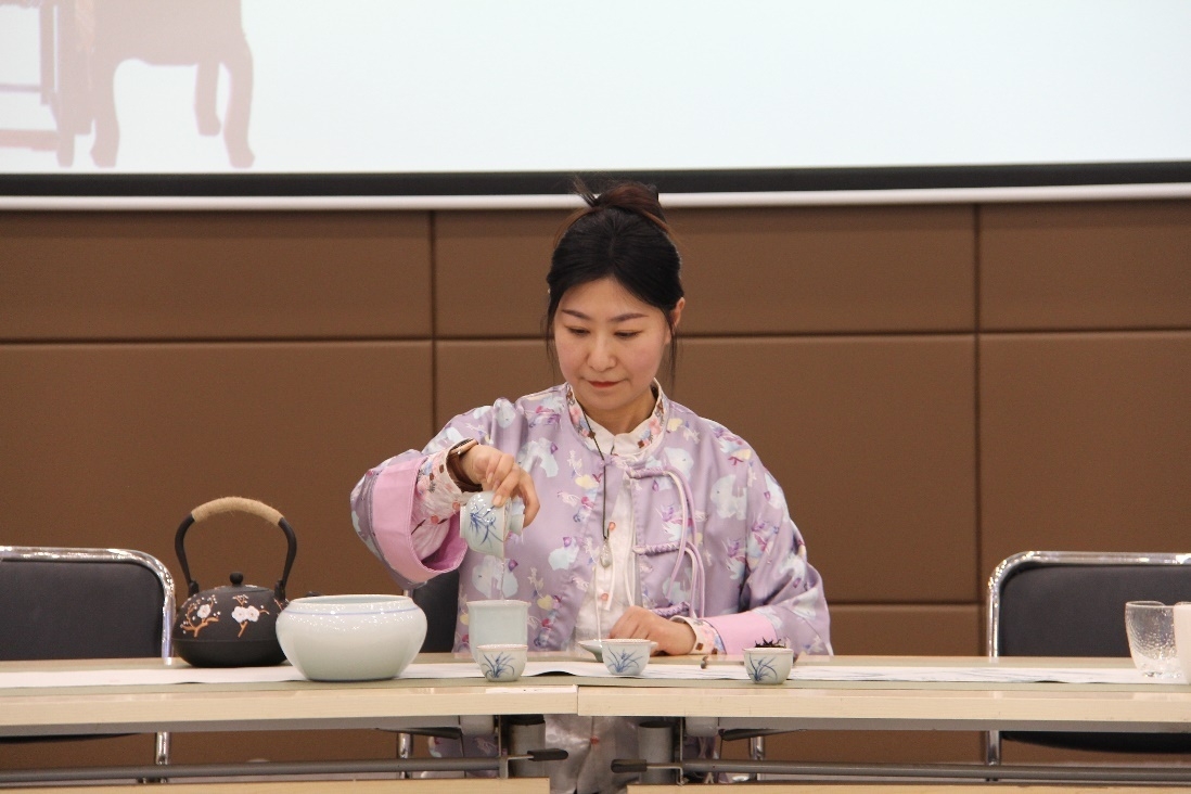 活动在茶艺师从容优雅的盖碗茶艺表演中拉开帷幕,在场师生首先在茶艺师的演示与讲解中,深入了解了我国的茶文化、茶礼仪及茶基础知识。以茶敬师,谦和恭敬,德馨兼备,茶语话恩师,感恩有您,伴随悠悠茶香,汤教授荣退仪式正式开始。风景园林系主任霍艳虹和教师代表孟瑾首先祝贺汤教授荣退,分别回忆了与汤教授共事的美好时刻和感人瞬间,并表示汤教授果敢正直、勇于担当的为人处事风格,严谨认真的工作态度,以及对工作充满热情的精神,为学院师生起到了表率和指引作用,是大家学习的榜样。