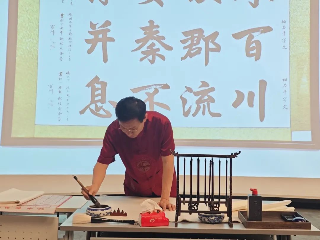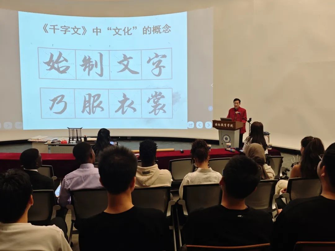 近日,北京书法家协会会员、荣宝拍卖书法作品专家百川老师为中外师生们带来了一场生动的“传承千年智慧,领略文字之美”——“千字文”国学文化讲座和书法展示活动。bv伟德中外合作办学学生和来自摩洛哥、孟加拉、乌干达、赞比亚等国家的百余名学生参加了活动。