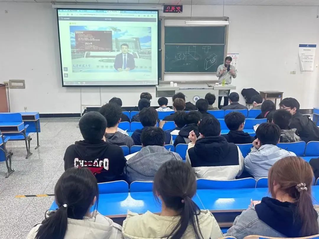 史庆伟在课上分别从“顺势而为,把握人才发展新机遇”“牢记嘱托,创造品牌强校新动能”“拼搏奋斗,展现天城大人新作为”三个方面进行讲授。他表示,在中华人民共和国成立75周年和京津冀协同发展国家战略实施10周年之际,国家发展和时代进步呼唤培养高质量人才,科技创新驱动下的新质生产力,其核心要素就是新人才,勉励同学们要抓住人才中心和创新高地建设的机遇,以及新一代人工智能的重大机遇,苦练内功,砥砺前行,创新竞进,用奋斗书写人生,用责任担当奉献祖国和人民。