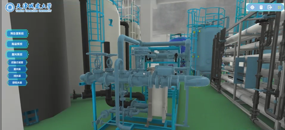 张新波团队重视提升教师利用数字技术优化、创新和变革教育教学活动的意识、能力和责任,借助现代信息技术和人工智能技术开展虚拟仿真课程教学,团队开展实施的芯片制造业超纯水制备集成工艺仿真实验获批天津市级虚拟仿真建设项目。