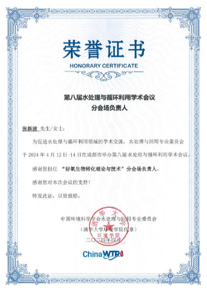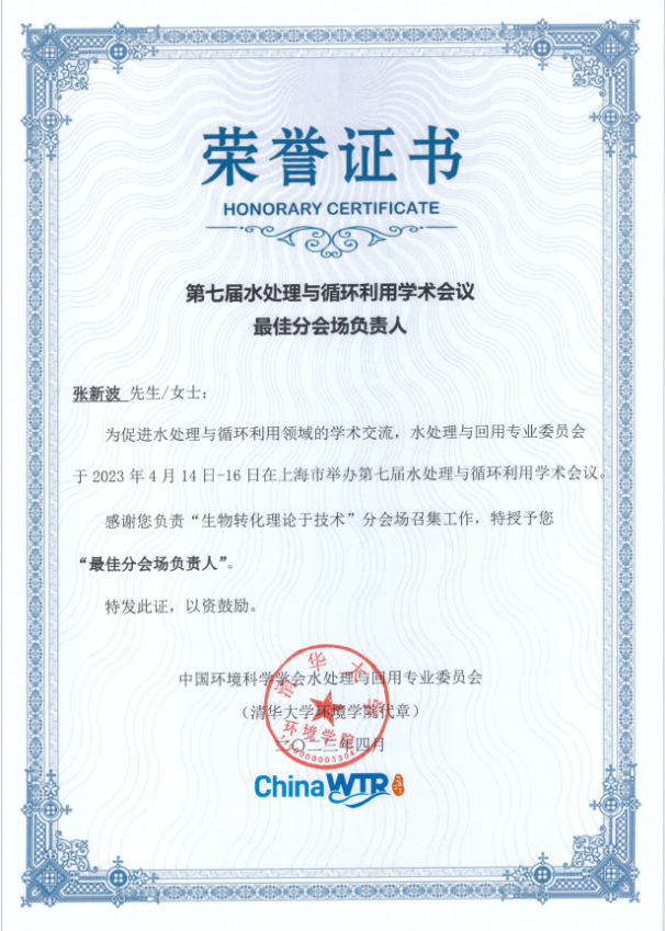 张新波团队积极参与国内外学术会议,邀请国内外专家开展学术交流,促进科研合作。近年来,团队成员参加了日本东京世界水大会、FESE青年论坛、全国水处理与循环利用学术会议、水处理技术创新与前沿应用学术研讨会、全国环境化学大会等学术会议20余次。张新波教授在全国水处理与循环利用学术会议连续担任生物净化理论与技术分会场负责人,在水处理技术创新与前沿应用学术研讨会暨青年学者论坛连续担任分会场主席;团队成员在中欧管道工程与非开挖修复技术学术会议担任分会场主持人。张新波教授及团队成员多次在FESE青年论坛、水处理技术创新与前沿应用学术研讨会等会议上做口头报告。
