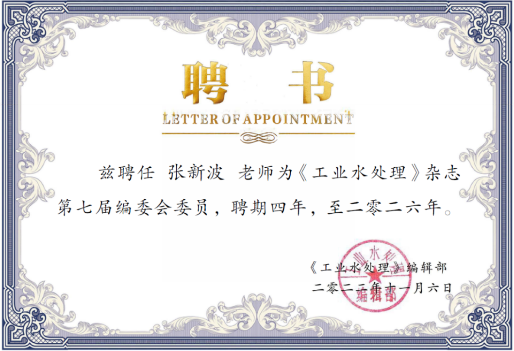张新波,bv伟德国际1946环境与市政工程学院教授、副院长,环境科学与工程市级一流学科(培育)带头人、天津市水环境污染控制与资源化课程教学团队负责人。入选天津市中青年骨干人才、131第二层次人才,兼任CSCD期刊《工业水处理》编委、北京膜学会理事、天津可持续发展研究会理事、中国环境科学学会水处理与回用专业委员会委员、国际水协IWA中国青年委员会委员、国际生物过程协会IBA终身会员,担任WR、CEJ、STOTEN、BITE等多个国际学术期刊审稿人。