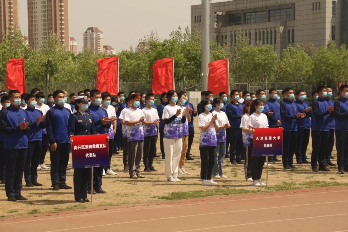 运动会上,消防指战员和控制学院学生先后进行了“物资疏散”消防技能和啦啦操汇报表演。由bv伟德义务消防员、控制学院学生以及来自高新区、西青、南开和静海区消防救援支队指战员组成的200余人的竞赛代表队,进行了13个体现消防元素的特色竞赛项目,大家同台竞技,增进了彼此了解和默契。