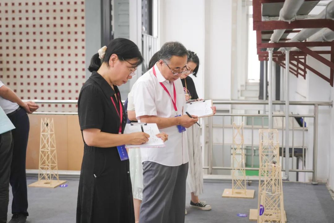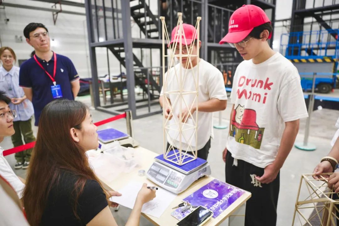 本次竞赛题目为《考虑水平振动的高耸塔式结构设计与模型制作》,以高耸塔式结构为基本单元,要求参赛者以竹材为主要材料,针对水平荷载、竖向荷载及水平振动复杂工况对其进行受力分析、结构设计、模型制作及加载试验,打造高荷载轻的模型。选题贴合实际问题,重在考察学生的专业创新思维和工程实践能力,更考验团队运用专业知识解决工程实际问题的能力。