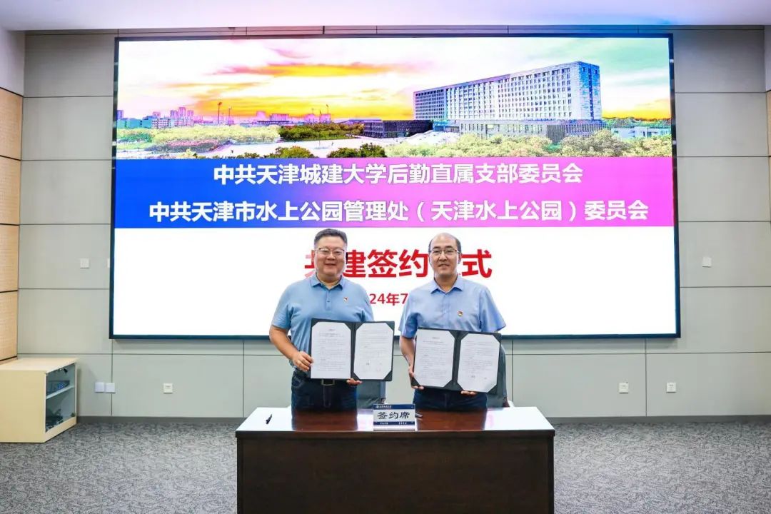 共建仪式上,bv伟德后勤处处长、后勤直属党支部书记(兼)贾凤勇与水上公园党委副书记、园长贾非共同签订了共建协议。双方就加强党组织的联系协作,共同探索生态校园建设新途径以及服务美丽天津建设等内容开展深入交流。