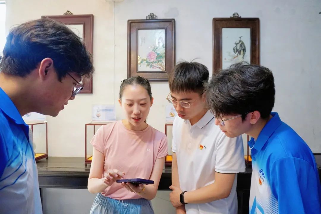 在传统文化研学基地,杨柳青镇党务工作者李培涛带领实践团队成员“沉浸式”体验乡村文化,深入了解当地扎染、蜡染、叶雕、活字印刷等多项非遗技艺。
