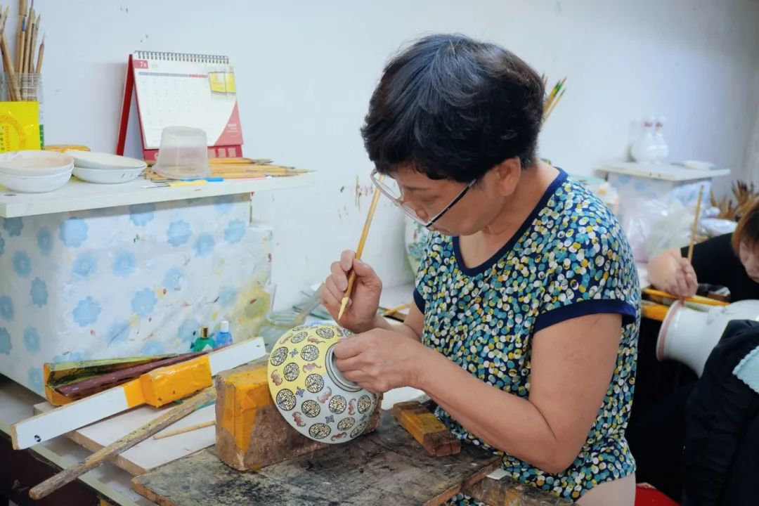 在古陶瓷研究中心,天津市非物质文化遗产第四代传人王晴向实践团队成员讲述了陶瓷的历史背景、制作工艺以及将粉彩瓷绘画、津门葫芦彩烙画与杨柳青年画相结合的特色做法。同学们在参观互动中被非遗传承人沉着专注的工匠精神所感染,更加深刻体会到中华优秀传统文化源远流长和创新发展的强大生命力,领略乡村之美,感受文化之韵。