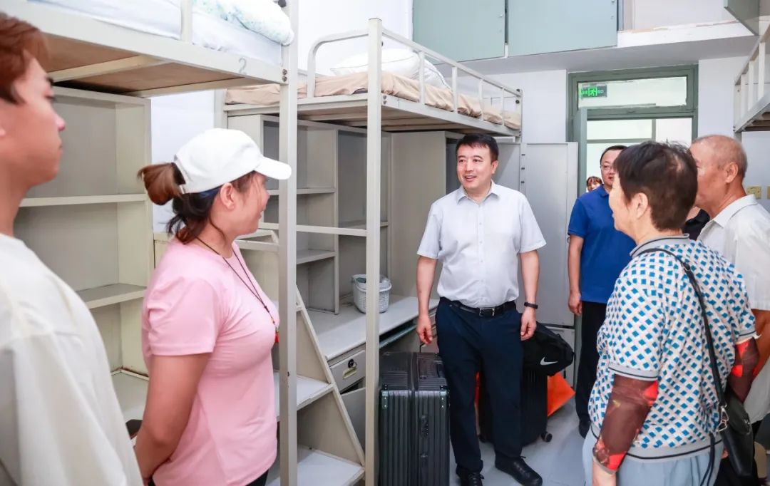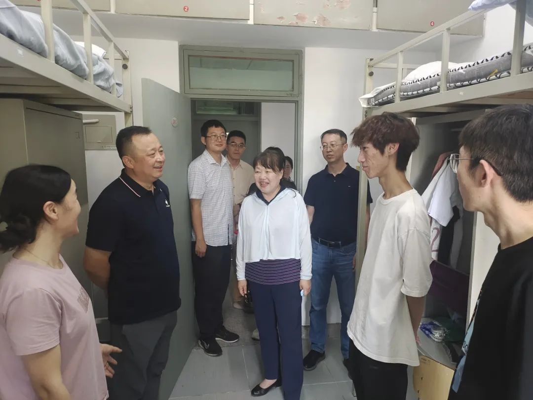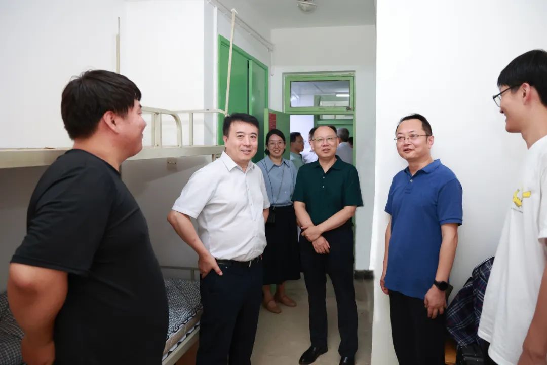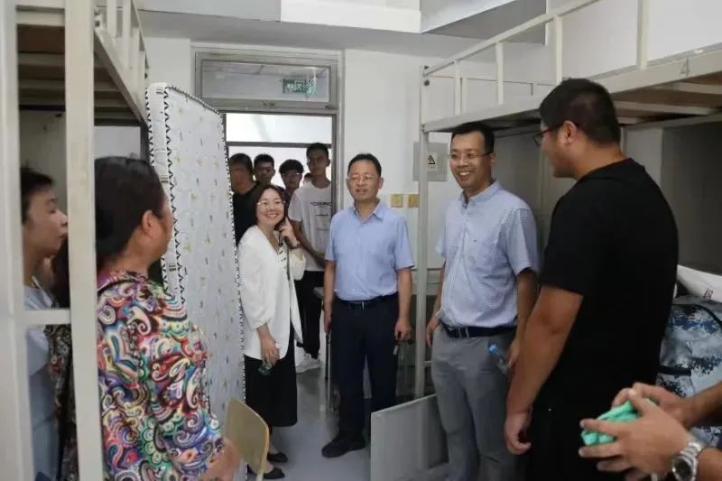随后,校领导一行先后来到学生公寓致知斋、思源斋、见贤斋、“一站式”学生生活服务中心和建园书院,现场查看2024级新生宿舍暑期修缮情况、学生公寓区党团活动室建设情况,了解新生“一站式”报到情况并慰问现场工作人员和学生志愿者,对如何进一步优化新生“一站式”报到服务体验、持续推动“一站式”学生社区建设向纵深发展等进行了现场指导。