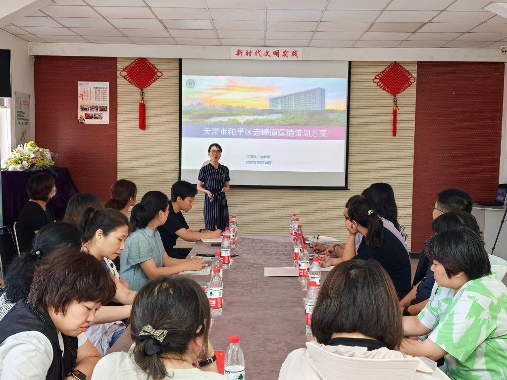 实践团通过细致的走访调查,掌握街道发展基本情况,根据赤峰道特色与资源,提出赤峰道品牌定位与品牌核心价值;借助街区优势资源,构建创意系列活动开展品牌塑造,制定出了详细的营销方案。沿街商铺工作人员说:“你们制作这个营销方案太有必要了,我们正愁客流量不够呢,你们这个营销方案能落地就太棒了!”为进一步优化营销策划方案,滨西社区党委书记、居委会主任王媛媛特邀和平区劝业场街道经济发展办公室主任孙加锡进一步研讨。