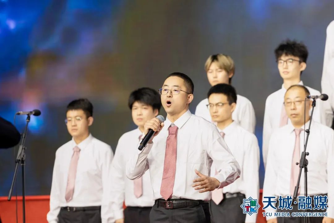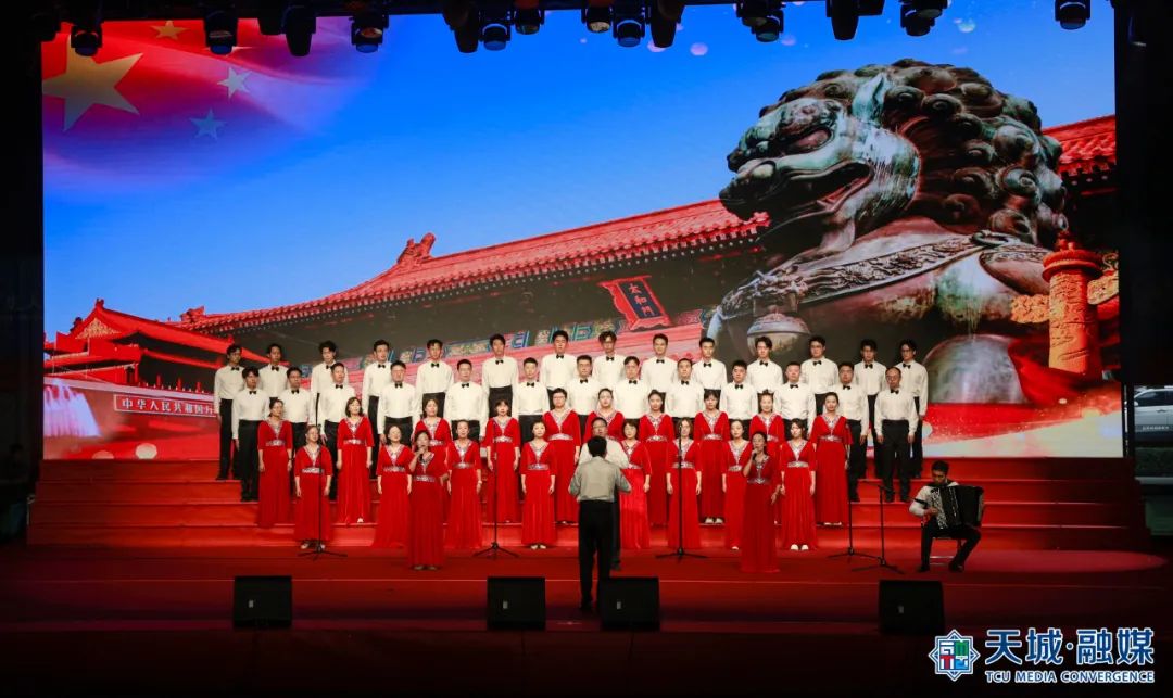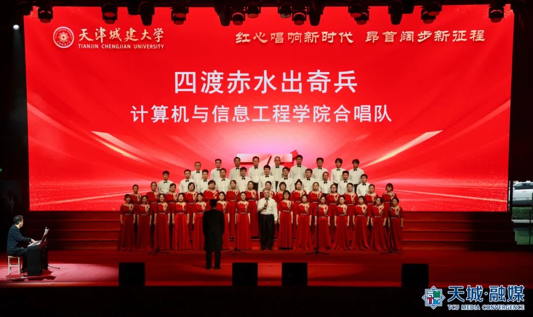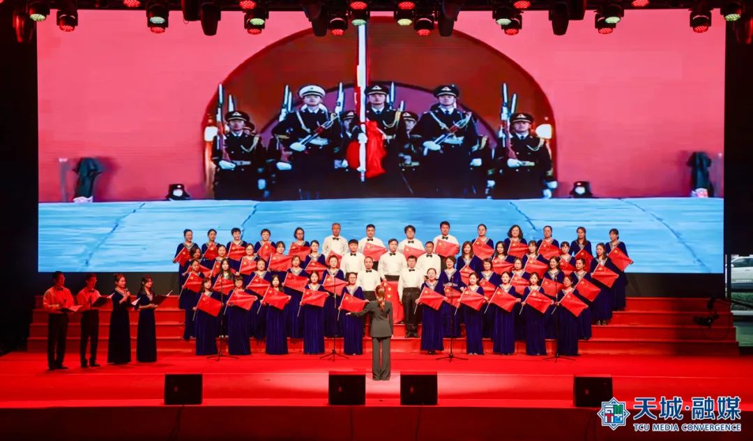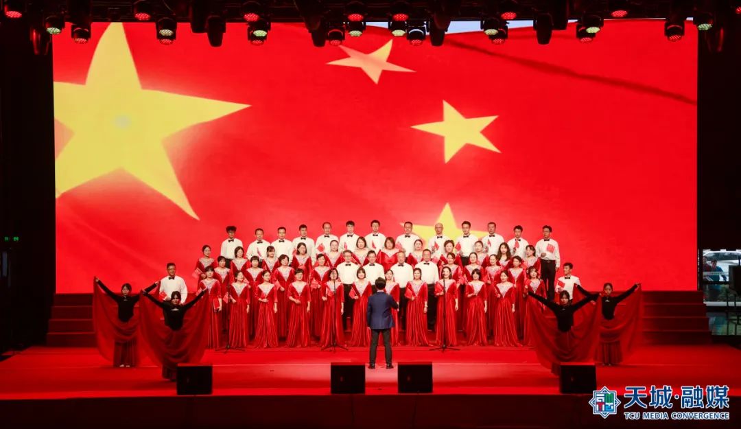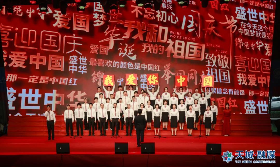 “我们祝福你的生日我的中国,这是儿女们心中期望的歌......”合唱比赛在《今天是你的生日,中国》的歌声中拉开序幕。《爱我中华》《我和我的祖国》《唱支山歌给党听》《歌唱祖国》《四渡赤水出奇兵》等耳熟能详、豪迈雄壮的红色经典曲目陆续唱响。比赛现场灯光璀璨、气氛热烈,17支参赛队伍、2支展演队伍纷纷亮出绝活,或深情朗诵,或载歌载舞,新颖的编排、磅礴的气势、饱满的热情赢得了现场观众阵阵掌声和欢呼声,浓厚的爱国主义氛围感染者现场的每一位观众。