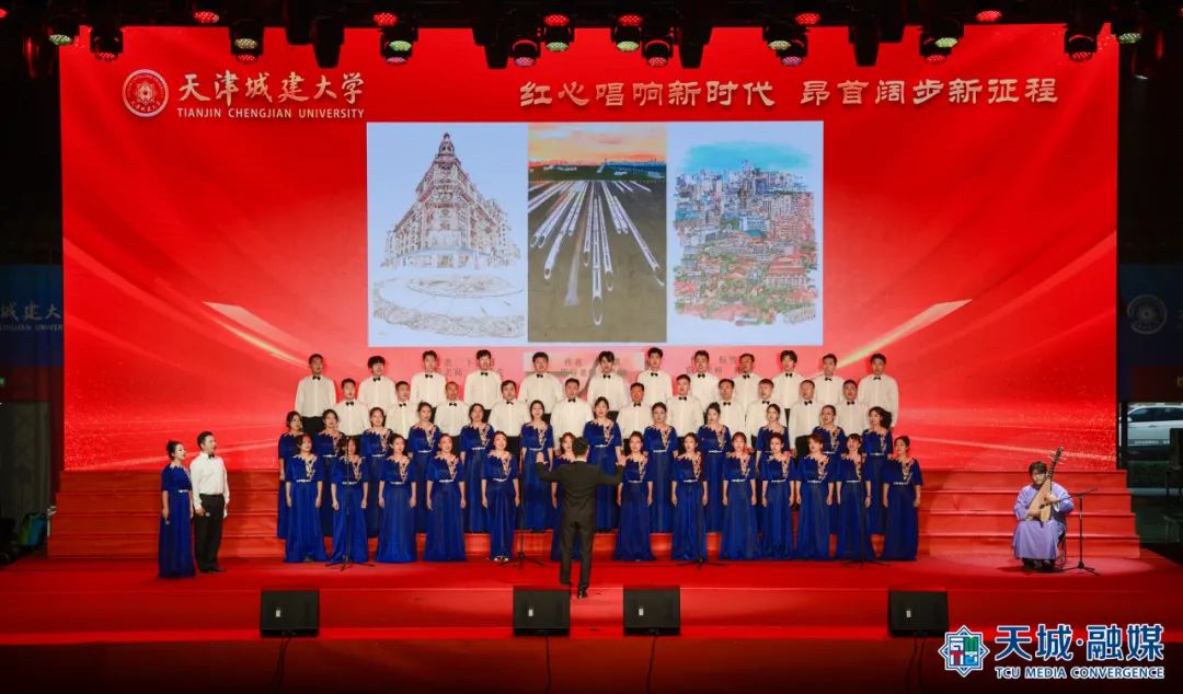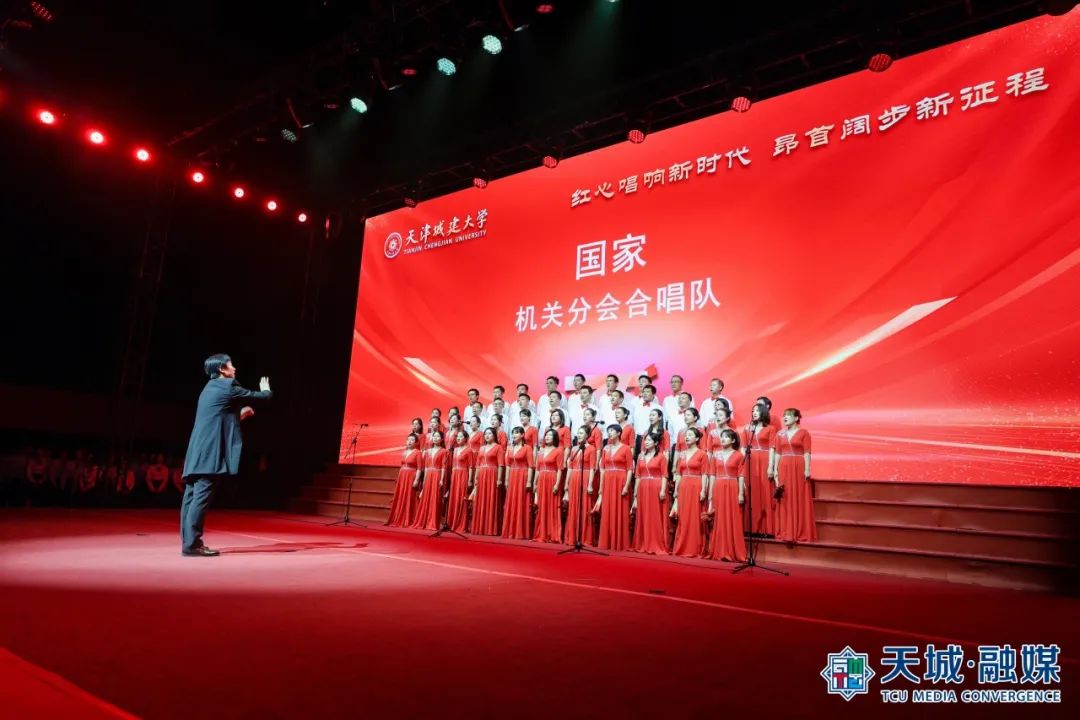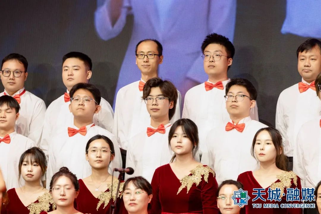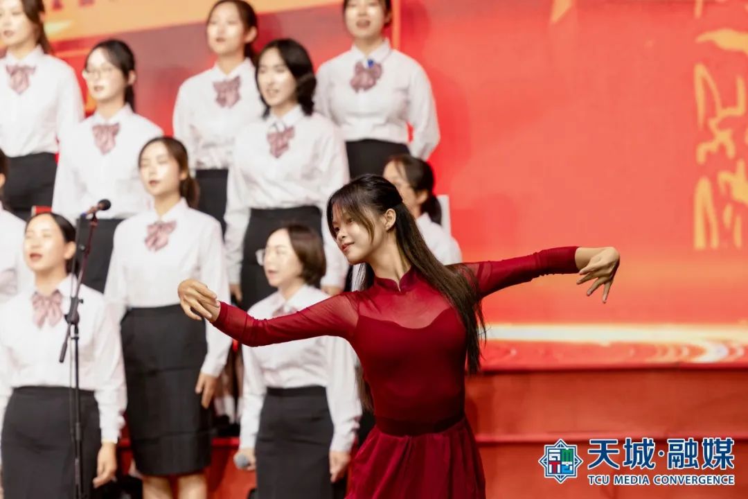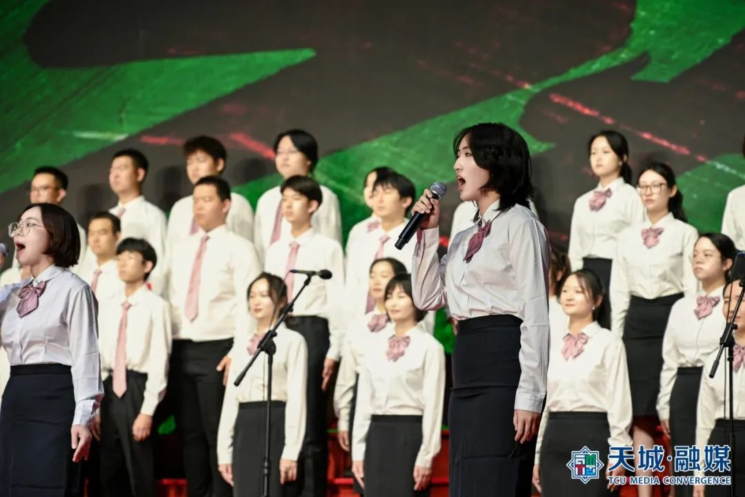 “我们祝福你的生日我的中国,这是儿女们心中期望的歌......”合唱比赛在《今天是你的生日,中国》的歌声中拉开序幕。《爱我中华》《我和我的祖国》《唱支山歌给党听》《歌唱祖国》《四渡赤水出奇兵》等耳熟能详、豪迈雄壮的红色经典曲目陆续唱响。比赛现场灯光璀璨、气氛热烈,17支参赛队伍、2支展演队伍纷纷亮出绝活,或深情朗诵,或载歌载舞,新颖的编排、磅礴的气势、饱满的热情赢得了现场观众阵阵掌声和欢呼声,浓厚的爱国主义氛围感染者现场的每一位观众。