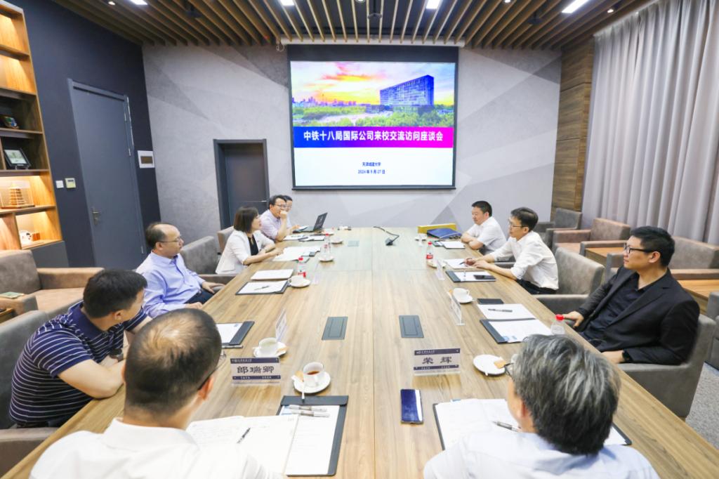 杨静对代表团一行的到访表示热烈欢迎,并介绍了天城大的整体概况、历史沿革、人才培养、中外合作办学和师资队伍建设等情况。她表示,中铁十八局集团国际公司深耕建筑施工领域,积极服务“一带一路”建设,是中国企业“走出去”的典型代表,彰显了“中国建造”的实力和国际影响力。学校与中铁十八局国际公司的校企合作空间广阔,希望未来可以共同搭建技术转化、学生海外实习平台,深化校企协同创新与人才联合培养。与会人员共同观看天城大宣传片,对学校的办学特色有了更深入的了解。