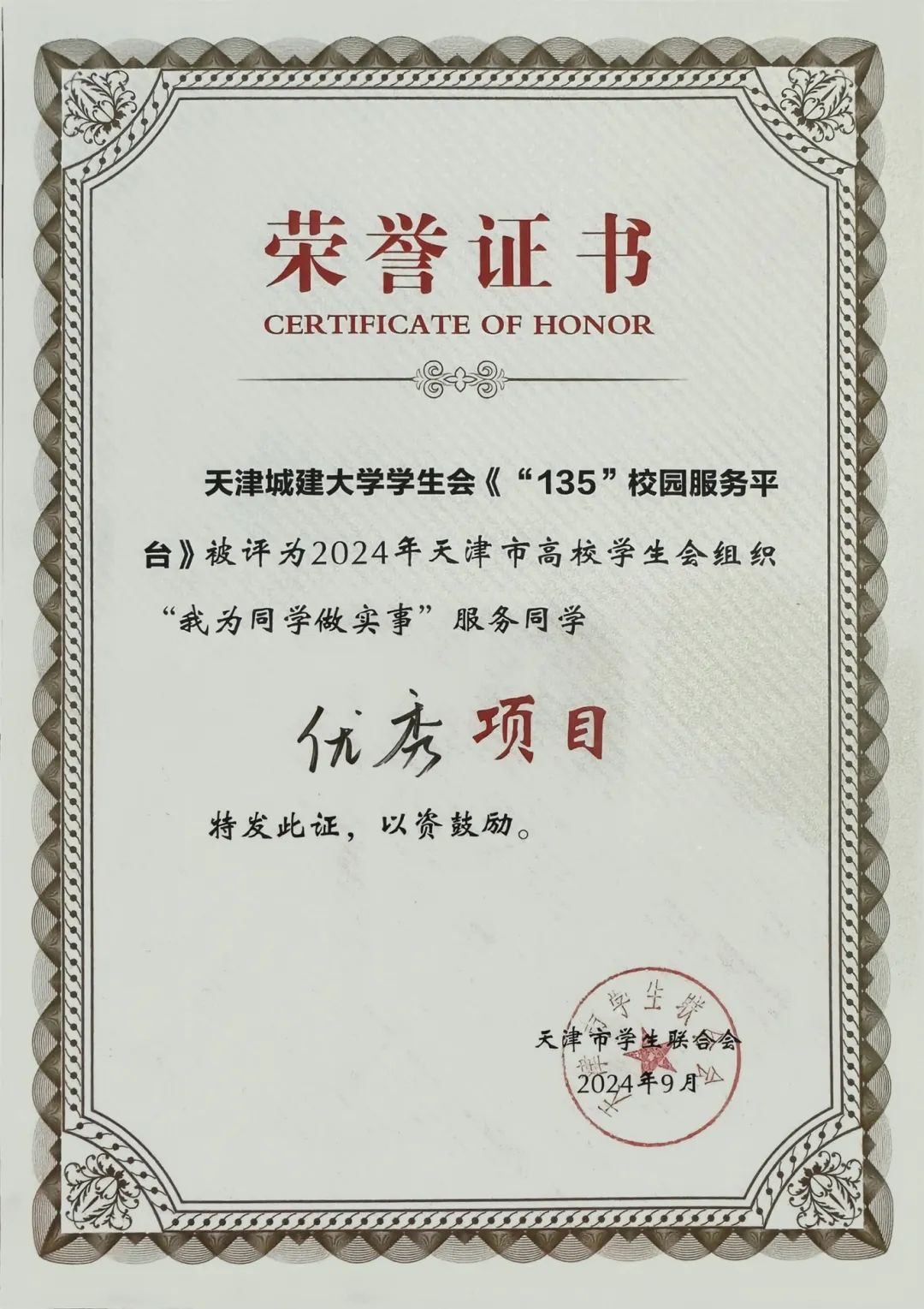 近日,由团市委指导、天津市学生联合会组织的“我为同学做实事”服务同学品牌项目市级终评展示活动落下帷幕,bv伟德学生会“‘135’校园服务平台”项目荣获“优秀项目”。