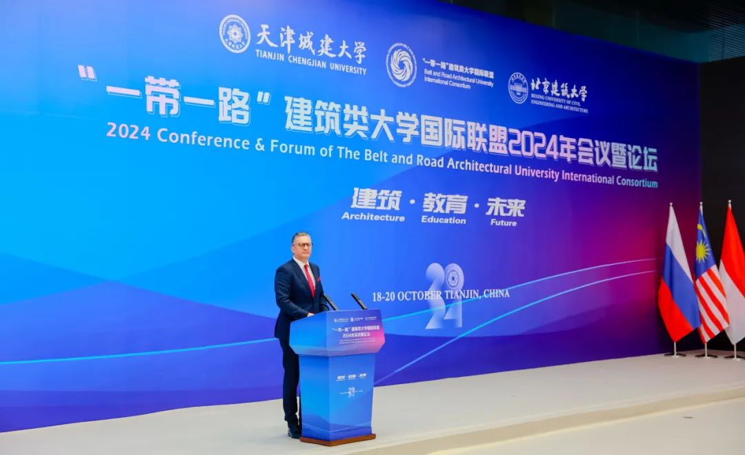 10月18日至20日,来自中国、俄罗斯、波黑、哈萨克斯坦、乌兹别克斯坦、埃塞俄比亚、马来西亚、印度尼西亚、希腊、保加利亚、英国、塞尔维亚等12个国家的20余位大学校长和企业家、40余所高校与机构的百余名联盟成员代表相聚美丽天津,共赴“一带一路”建筑类大学国际联盟2024年会议暨论坛之约。