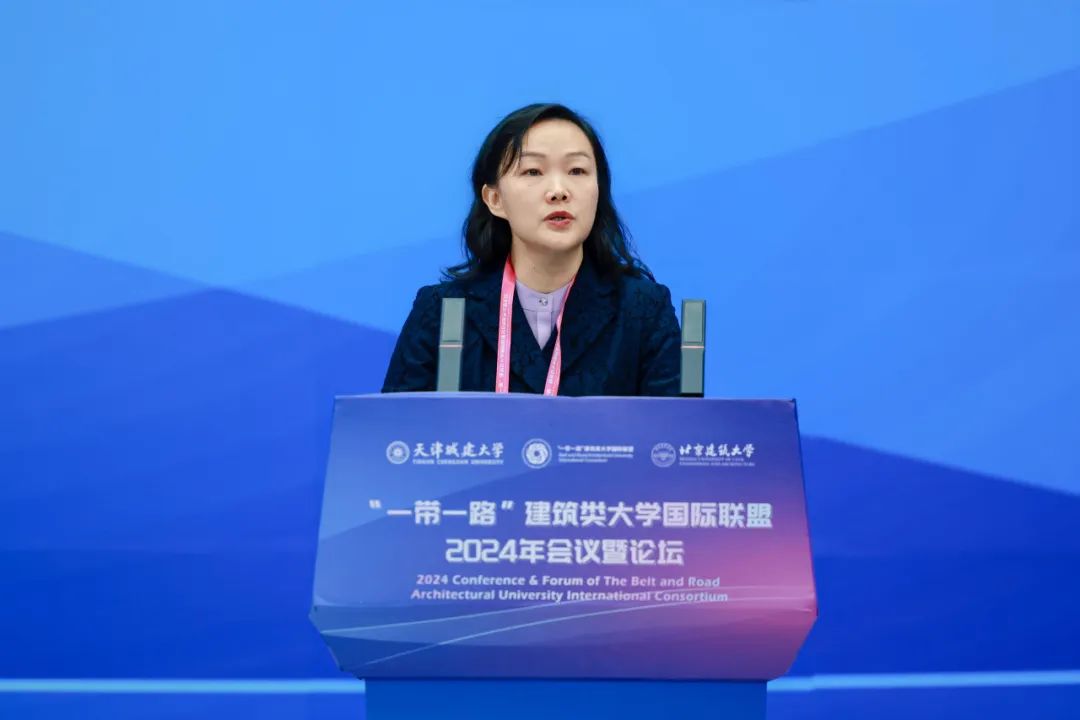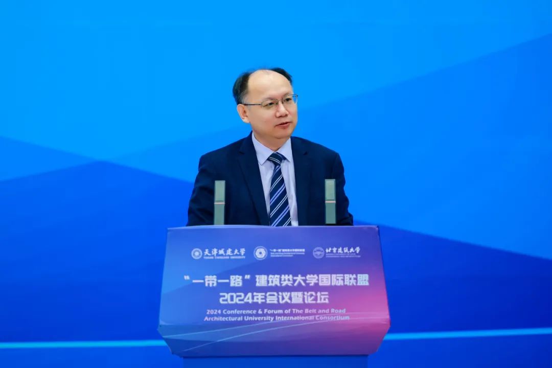 市对外友协副会长黄春艳在致辞中表示,天津市积极推动高水平对外开放,完善对外交往布局,发挥天津港口、职教、产业、区位优势,积极融入“一带一路”建设,拓展深化国际友城交流合作。“一带一路”建筑类大学国际联盟2024年会议暨论坛能够在天津举办,既为各国高校及企业代表提供了一个交流思想、分享经验、探索合作的平台,也为天津与国际社会对话、在国际舞台展示天津形象提供了良好契机。未来,天津市外办将一如既往地支持bv伟德国际1946广泛参与联盟的各项交流活动,借助联盟平台共同推动开展更多国际化科研实践、产学研项目整合转化以及创新人才培育,推动更广领域、更深层次的人文交流,共同提升天津城市国际化水平,促进天津对外交流合作,服务构建人类命运共同体。
