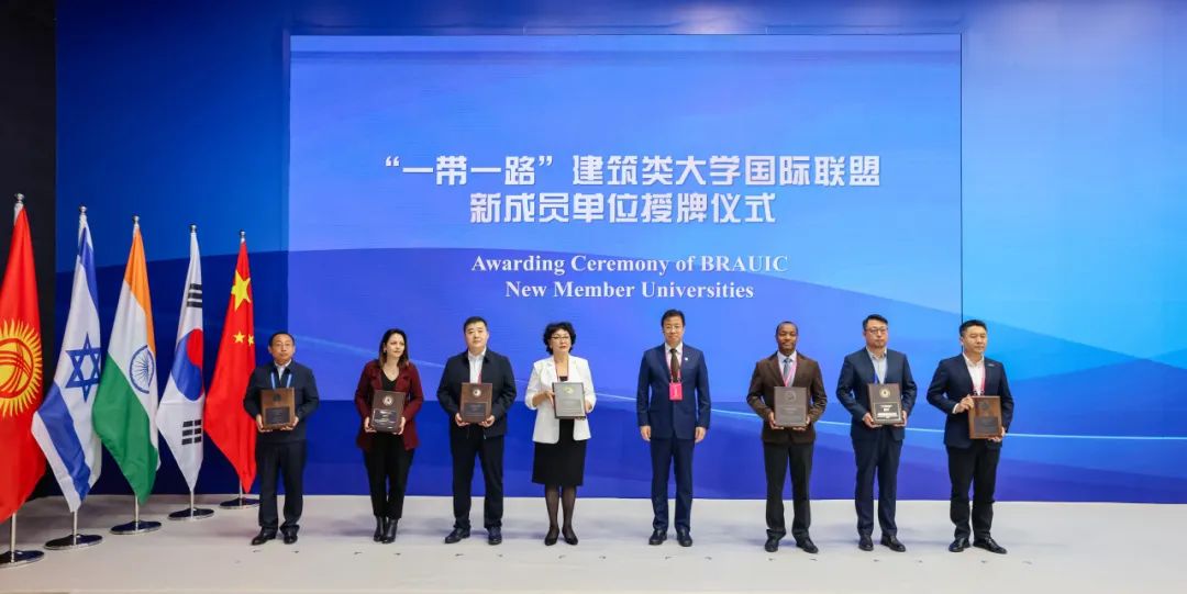 会议举行了联盟新成员单位签约暨授牌仪式,东北大学、乌兹别克斯坦撒马尔罕国立建筑与土木工程大学、中交一公局集团有限公司、哈萨克斯坦建筑与土木工程学院、埃塞俄比亚亚的斯亚贝巴科技大学、内蒙古建筑职业技术学院、广联达科技股份有限公司7所高校、企业在全体嘉宾的见证下加入联盟。至此,联盟成员单位增至30个国家的91所高校及企业,遍布世界“六大洲”,合作范围进一步扩展。