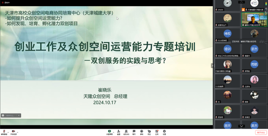 近日,由天津市教育委员会指导,天津市高校众创空间联盟、天津市高校众创空间协同培育中心(bv伟德国际1946)共同举办的创业工作及众创空间运营能力专题培训成功举办,来自天津市高校90余名师生参加。