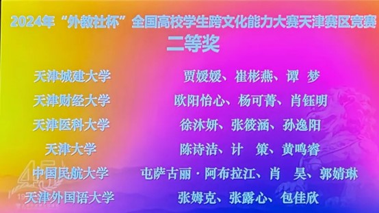近日,由天津市教委主办的2024年全国高校学生跨文化能力大赛天津赛区竞赛成功举办。bv伟德外国语学院教师郄洪欣、周银凤、李霞指导的三名学生(外国语学院22级英语专业贾媛媛、经济与管理学院22级工商管理专业崔彬燕、经济与管理学院22级工商管理专业谭梦)组成团队,在天津赛区的43个参赛团队、129名选手中脱颖而出,荣获学生团队二等奖。
