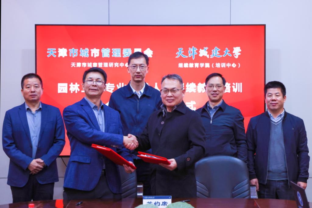 签约会上,继续教育学院直属党支部书记马中记介绍了继续教育学院的基本情况,天津市城市管理研究中心书记、主任佟宝君介绍了天津市城市管理研究中心基本情况,双方就依托良好的合作基础,持续加强交流沟通,精准开展合作达成了共识,共同合作开展好园林工程专业技术人员继续教育培训。