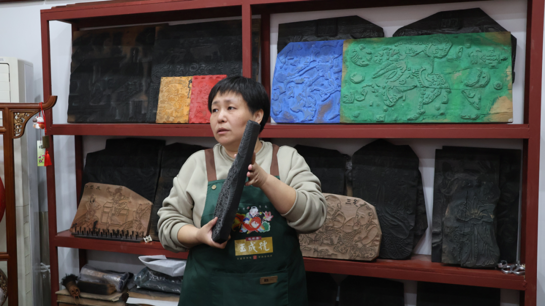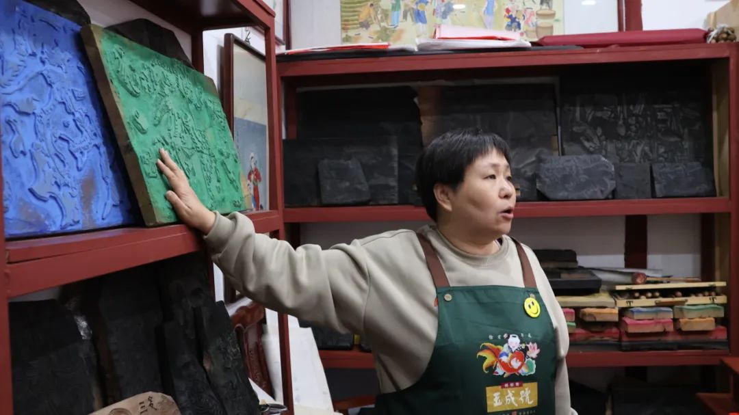 随后,蒋锦坤老师为同学们介绍了经典木版年画寓意,如《莲年有余》《门神》《琴棋书画》,每幅年画都凭借着刻工精丽、手法细腻、色彩鲜明、形象生动的特点深受人们喜爱。她表示,作为中国传统文化的瑰宝,杨柳青年画不仅要在技艺上追求创新,更要在文化传承上发挥作用,结合现代审美需求,不断创新发展,让杨柳青年画焕发新时代的生机与活力。