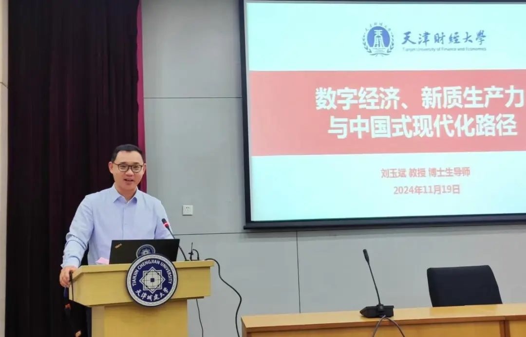 天津财经大学商学院党委书记、教授、博士生导师、天津市特聘教授青年学者、天津市中青年骨干创新人才、天津市社会科学界联合会第七届委员刘玉斌教授,以“数字经济、新质生产力与中国式现代化路径”为主题,阐述了数字经济的本质内涵、发展数字经济的重要意义以及数字经济与新质生产力的内在关系,深入解读了党的二十届三中全会提出的“健全因地制宜发展新质生产力体制机制”“健全促进实体经济和数字经济深度融合制度”,并分享了关于生产要素创新性配置和企业数字化转型发展路径的思考与探索。