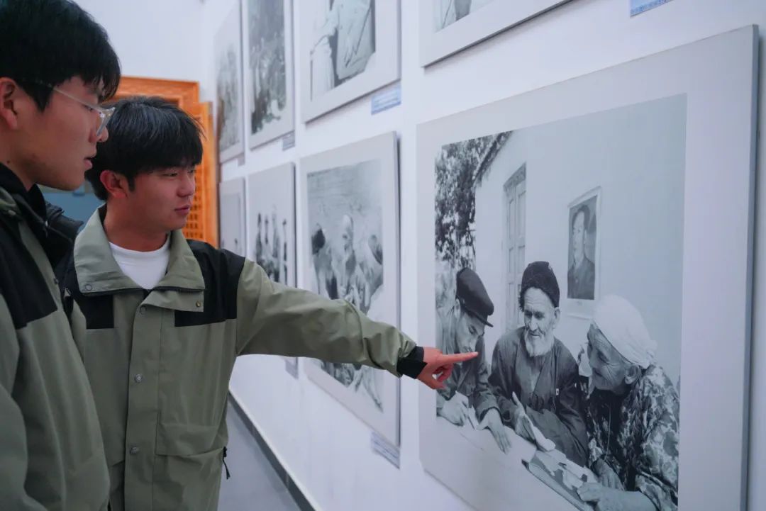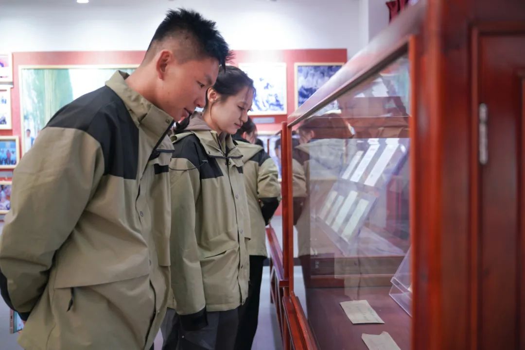 习近平总书记给库尔班·吐鲁木后人的回信陈列在展厅中,字字句句,饱含深情,蕴含着殷殷嘱托。“希望你们全家继续像库尔班大叔那样,同乡亲们一道,做热爱党、热爱祖国、热爱中华民族大家庭的模范,促进各族群众像石榴籽一样紧紧抱在一起,在党的领导下共同创造新疆更加美好的明天。”作为支教学生,我们也要以更加饱满的热情和坚定的信念,扎实支教工作,努力为民族团结进步贡献青春力量。参观学习过程中,支教团有幸遇见了库尔班大叔的曾外孙女如克亚木·麦提赛地,同时也曾是我国第一艘航母辽宁舰上的一名女兵,她与支教团成员一同合影留念。