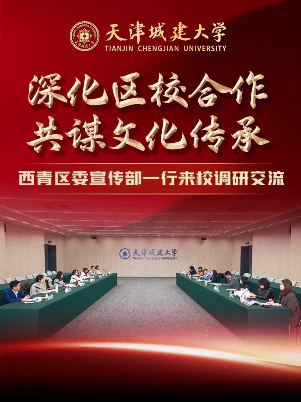史庆伟对西青区委宣传部一行来访表示欢迎,感谢西青区委、区政府一直以来对学校事业发展的大力支持。他表示,学校和西青区未来要继续深化合作,要立足城建办学特色,拓展更多领域产学研项目对接,为提升西青天开园的科创服务能级和产业集聚效应贡献天城大作为,要续写区校“双向奔赴”的新篇章,共同为把市委、市政府的工作要求切实转化为区校高水平合作和高质量发展的生动实践而努力,为全面建设社会主义现代化大都市、奋力谱写中国式现代化天津篇章贡献力量。