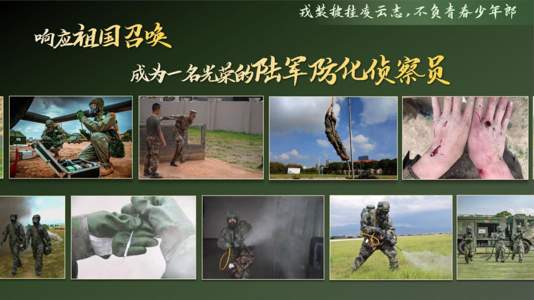2020年,黄若一响应祖国召唤,成为一名光荣的陆军防化侦察员。防化侦察员是跳动在生死线上的舞者。海风刺痛,烈日炙烤。他身负闷热的防毒衣和沉重的仪器,在呛人的浓烟和复杂的地形中穿毒烟、识毒源、擒毒魔,与毒作战,争分夺秒。2022年7月底,接到上级紧急作战任务,即将退役的他主动请战,作战海岛距敌阵仅1.8海里。在闷热的树林里伪装,在凶险的滩涂里侦察,最终圆满完成任务。服役期间,他共4次参与战区级别演训任务,荣获“四有”优秀士兵、全旅比武冠军等多项荣誉。部队生涯,让他坚定了为党和人民贡献自己的毕生力量。