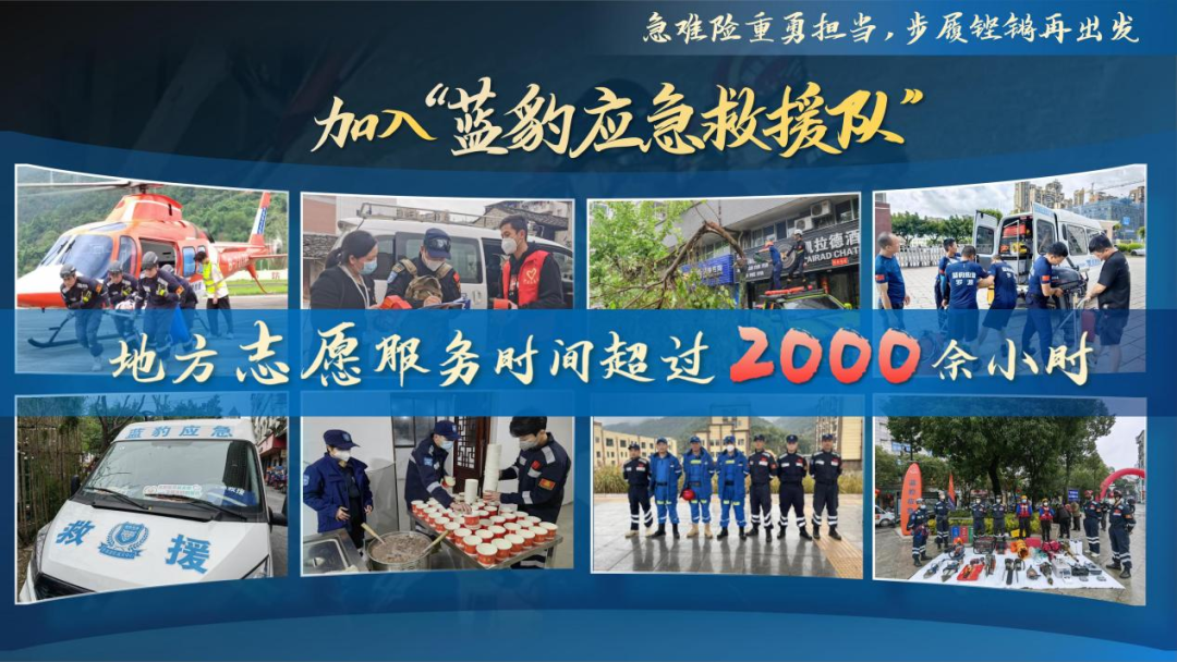 离开部队后,黄若一加入福建蓝豹应急救援队,累计志愿时长2000余小时。2023年7月,63年来首登福建的最强台风“杜苏芮”来袭。灾情就是命令,他冲锋在抢险救灾最前线,和团队提前2天预置驻点备灾,克服罗源县地势起伏错落,水情复杂的困难,3天之内完成了群众转移、道路抢险、电力恢复等救援工作。困了纸板上打地铺,饿了啃个凉馒头。他的双手被麻绳磨破,血肉模糊,70余小时接力救援,他用钢铁的意志守护一方平安!从东南沿海抗台救灾,到西部边疆爱心支教,再到渤海津城研学宣讲,他的志愿服务足迹遍布祖国大地。
