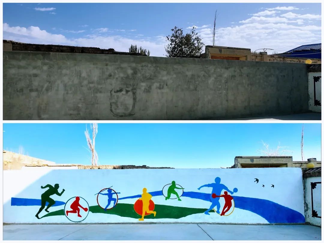 《体育与健康》墙绘前后对比图