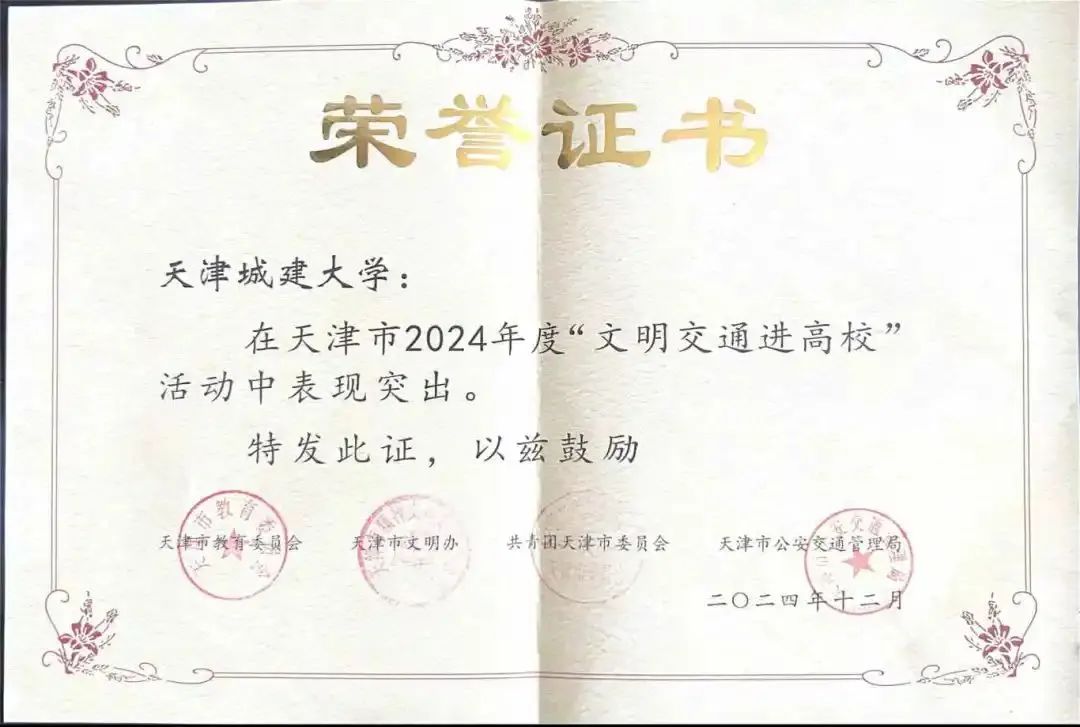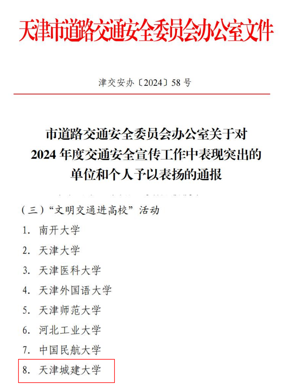 近日,在由天津市教育委员会、天津市文明办、共青团天津市委员会、天津市公安交通管理局等部门组织开展的2024年度“文明交通进高校”活动中,bv伟德获评“文明交通进高校”活动优秀高校。