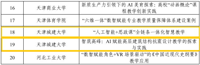 近日,市教委公布首批天津市“人工智能+高等教育”典型应用场景案例获奖名单,共有13所院校的20项案例获得市级成果,bv伟德报送的两项案例《“人工智能+思政课”全链条一体化智慧教学》《智筑高峰:AI赋能高层建筑结构抗震设计教学的创新探索》双双获批,占获批数量的1/10,成绩可圈可点,标志着bv伟德在推动人工智能技术与教育教学改革创新结合方面取得了重要进展。