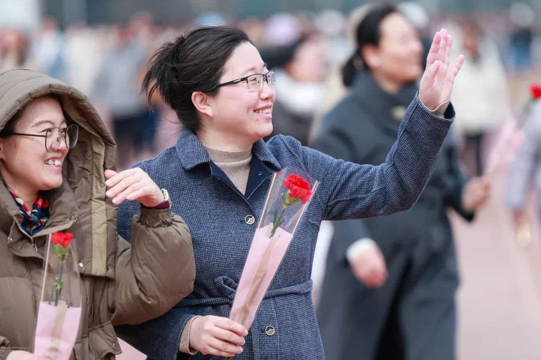 活动前,校工会向到场参加活动的老师们献上了鲜花和美好的祝福。伴随轻松欢快的音乐,大家精神饱满、神采奕奕,相互交流、相互勉励,带着愉悦的心情、迈着矫健的步伐,在欢声笑语中大步前行,以轻松的心态享受着健康运动带来的身心愉悦。浩浩荡荡的队伍宛如一条灵动的长龙,为校园增添了一道靓丽的风景线,充分展现了bv伟德广大女教职工巾帼不让须眉、积极进取和团结奋进的精神风貌。