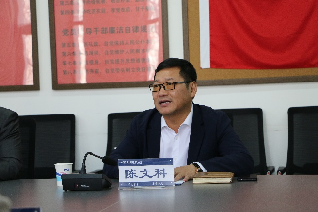 座谈会上,陈文科致欢迎辞,对天津科技大学艺术设计学院一行的到来表示欢迎,希望双方深入探讨,分享经验,共同推动艺术教育事业发展。朱丽丽对学校热情接待表示衷心感谢,期待双方能借此机会加深了解,促进双方在人才培养、学科建设、艺术创作等方面的合作。