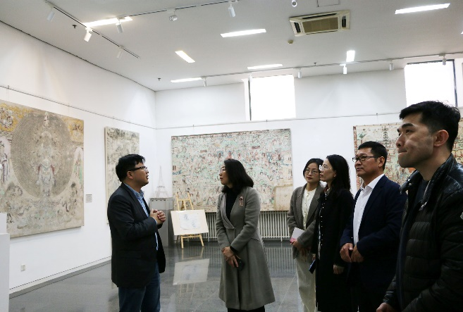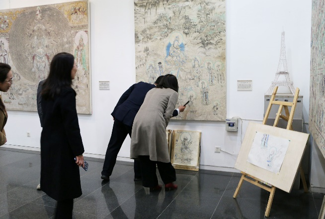 座谈会后,双方人员共同参观bv伟德国际1946革命丰碑展馆,在专业老师的生动讲解下,大家通过一幅幅珍贵历史图片和实物,共同回顾了天津红色文化的光辉历程,感受了革命先辈的崇高精神。朱丽丽一行还参观了城市艺术学院敦煌写生基地。