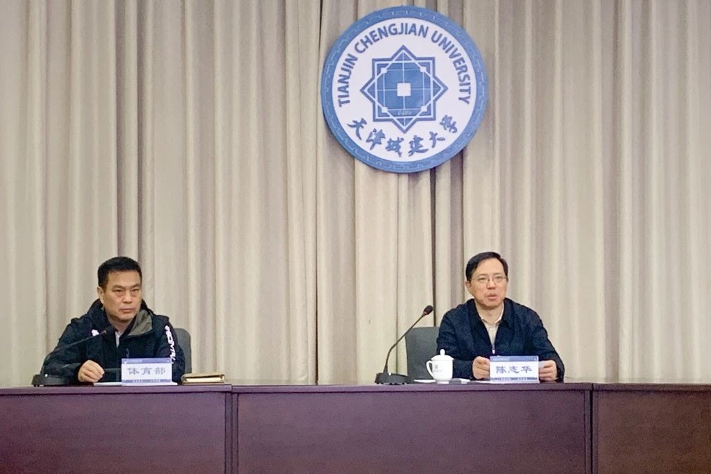 陈志华对体育工作取得的成绩给与了充分的肯定,结合相关工作进行了部署。他表示,近年来学校持续推进体育课程改革,充分发挥学生体育社团作用,广泛开展校园群众体育活动,形成了赛程贯穿全年的校园体育竞赛体系。体育节和运动会是落实“城大行动”的举措之一,也是推动bv伟德体育工作水平和提高师生体育运动能力的有效载体,全体裁判员、工作人员要认真准备,严守规则,保证各项竞赛顺利进行。各学院要以运动会为契机,认真开展学生阳光体育运动,组织学生积极参与体育运动。各部门和二级学院要细化工作方案和阶段性目标,共同推进重点项目建设,打造城大竞技体育品牌。