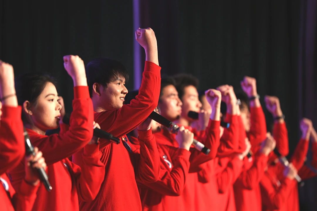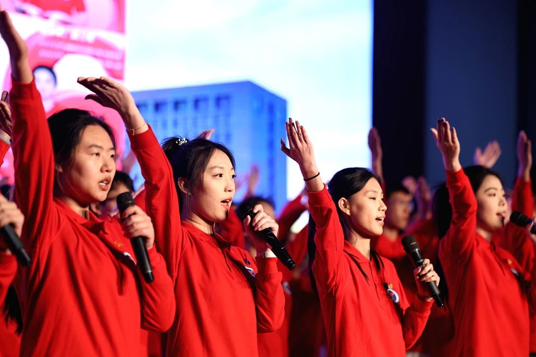 活动尾声,两期薪火班学员整齐列队,身姿挺拔。激昂的旋律《强国一代有我在》奏响,他们目光坚定,齐声高歌,仿佛在向世界宣告新时代青年的使命担当;他们手臂挥动,动作洒脱,展现出自信与豪迈。“广大青年要坚定不移听党话、跟党走,怀抱梦想又脚踏实地,敢想敢为又善作善成,立志做有理想、敢担当、能吃苦、肯奋斗的新时代好青年,让青春在全面建设社会主义现代化国家的火热实践中绽放绚丽之花。”大屏幕上,习近平总书记的寄语振奋人心,现场气氛被推向高潮,在场的每一个人都深深感受到传承红色血脉、担当强国使命的热忱与决心。